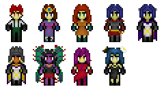 Original sprite versions of Brick, Serra, Janlyn, Vilia (aventurer and guard),